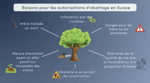 En Suisse, l’abattage d’un arbre peut nécessiter une autorisation, selon les règlements communaux et cantonaux. Les critères incluent la santé de l’arbre, son âge, sa taille, son emplacement, et le danger potentiel qu’il représente.