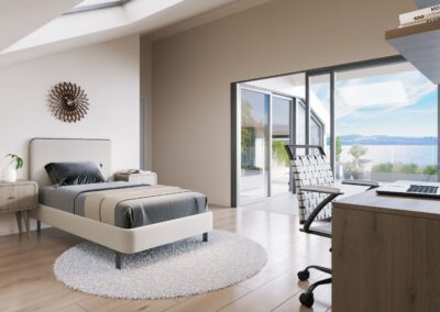 Deux autres chambres, de 18 m², accueillent famille ou invités dans un confort sans compromis. Elles sont desservies par une salle de bains généreuse de 8.5 m², avec double lavabos, douche et baignoire où se conjuguent esthétique et bien-être.